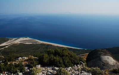Долу, в подножето на планината, един от по-дългите диви Албански плажове.